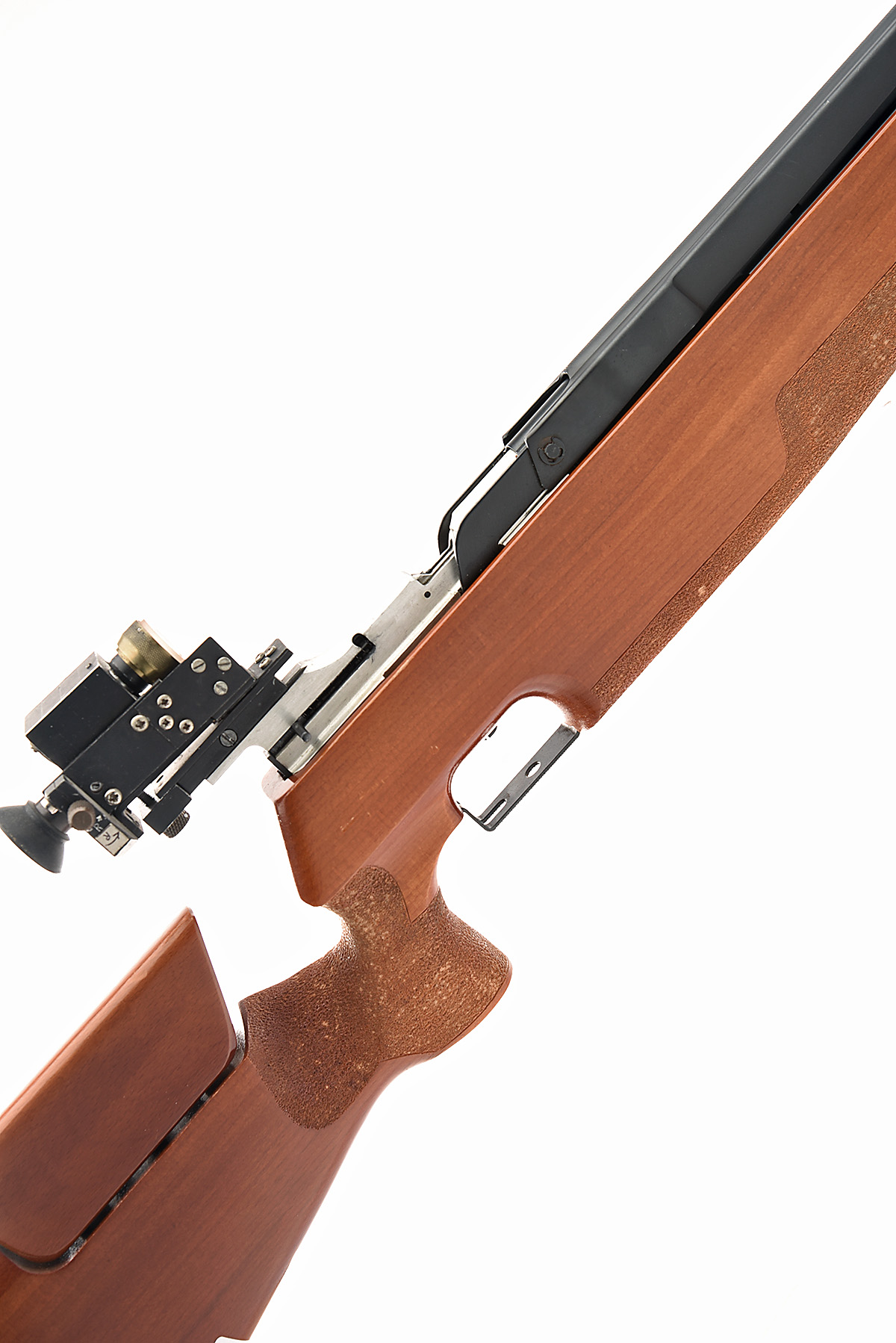 A .177 SINGLE STROKE PNEUMATIC AIR RIFLE SIGNED HAENAL MODEL MLG 550 Serial no 16586, with a 25in. barrel, diopter target sights, fitted in an ergonomic, adjustable, Beech target style stock.