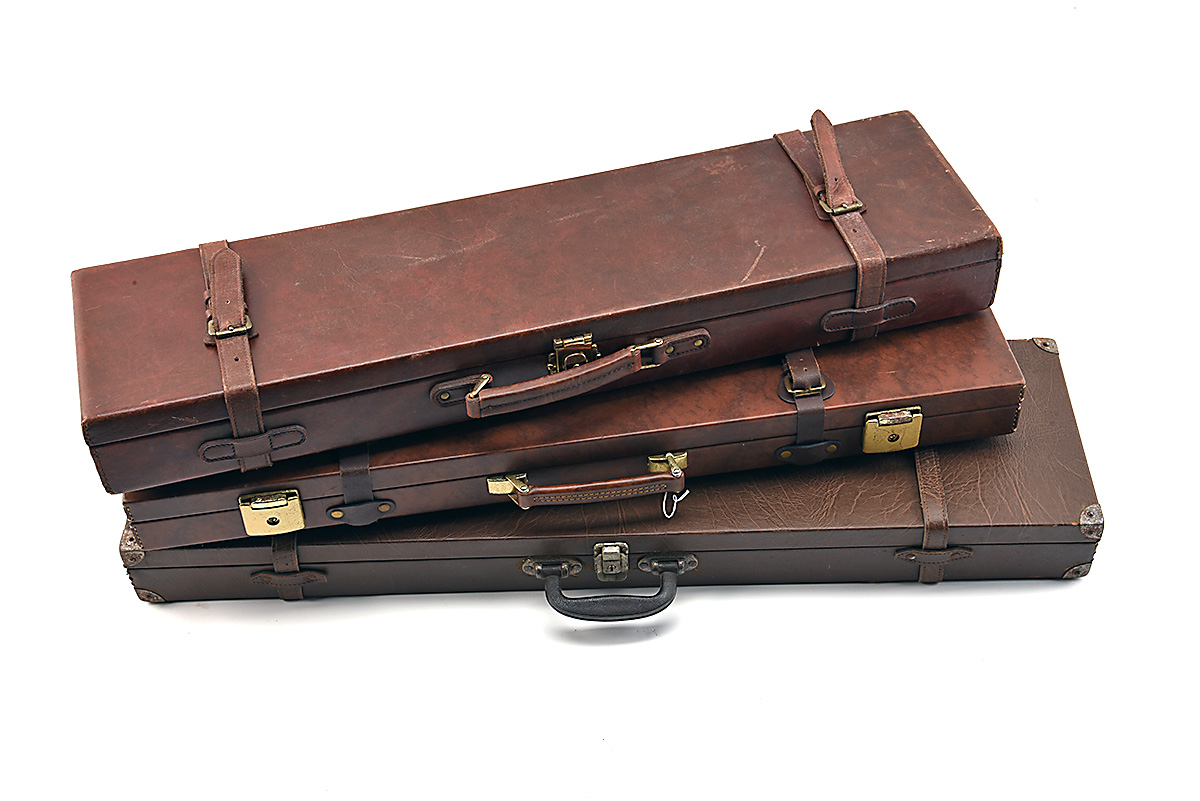 THREE BROWN LEATHER GUNCASES, 'A collection of 3 leather gun cases'