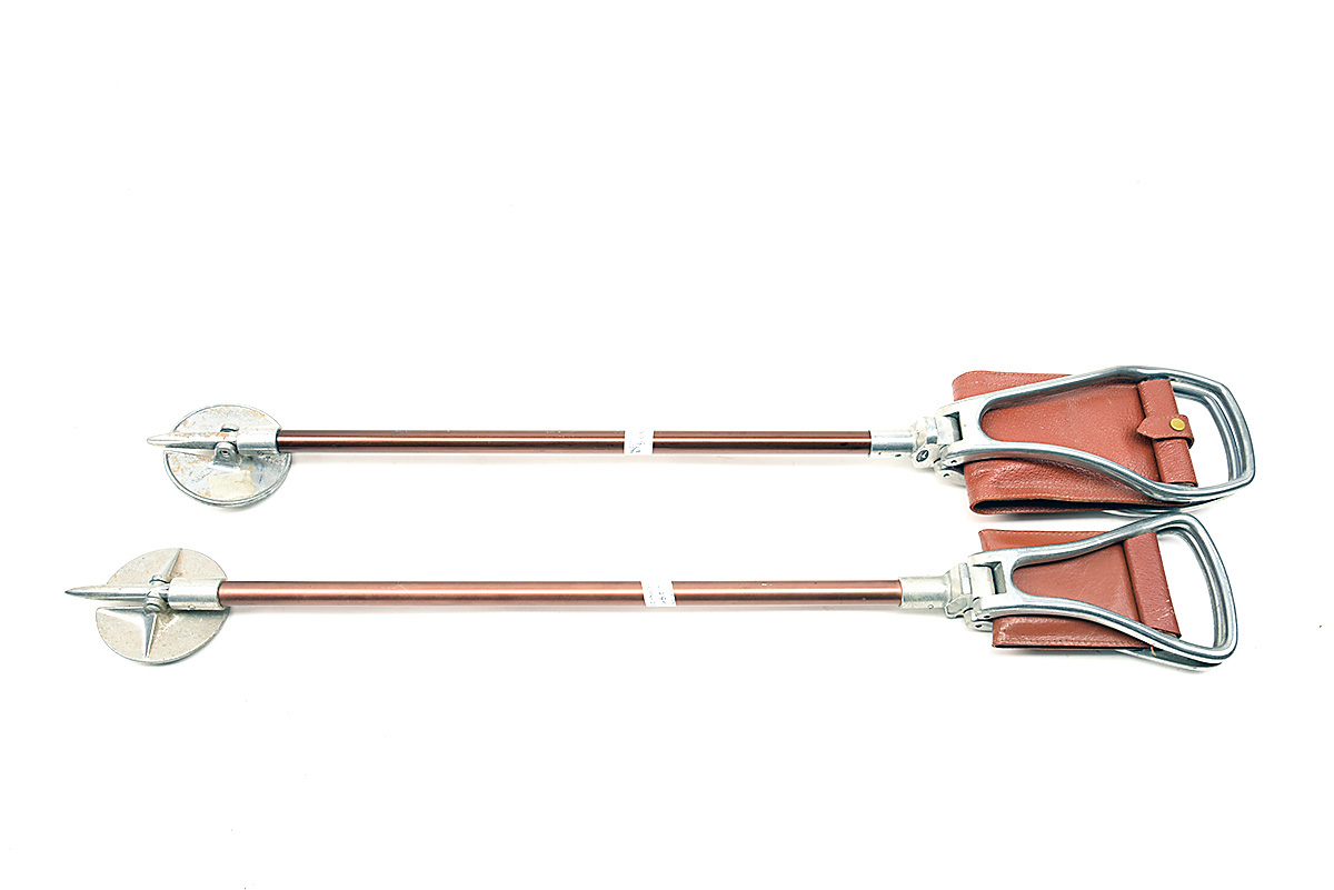 A COLLECTION OF TWO ENGLISH ALUMINIUM AND LEATHER SHOOTING STICKS