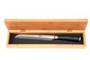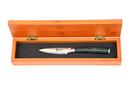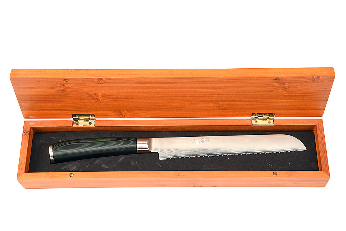 A SET OF FIVE SEPARATELY BOXED MIDORI KITCHEN KNIVES OF JAPANESE VG-10 DAMASCUS, BY RICHARDSON OF SHEFFIELD AS NEW, two with 3in. blades, one with wide 5in. blade and two with 7in. serrated blades, all with attractive laminate grips and contained in their bamboo boxes all as new and unused, these are top quality expensive knives originally selling for as much as £70 each