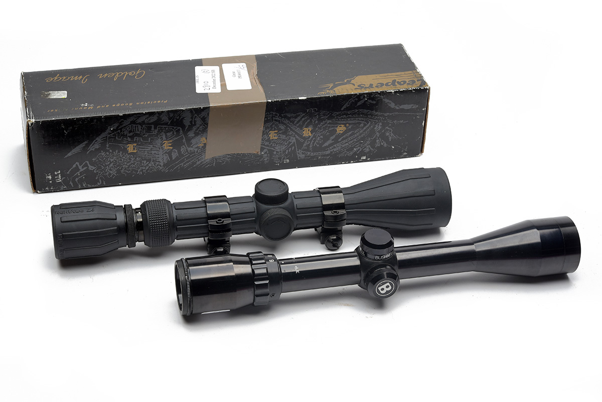 TWO TELESCOPIC RIFLE SCOPES, 'a norinco zj telescopic rifle scope with mounts and a bushnell wide angle 3x-9x 38 telescopic rifle scope'