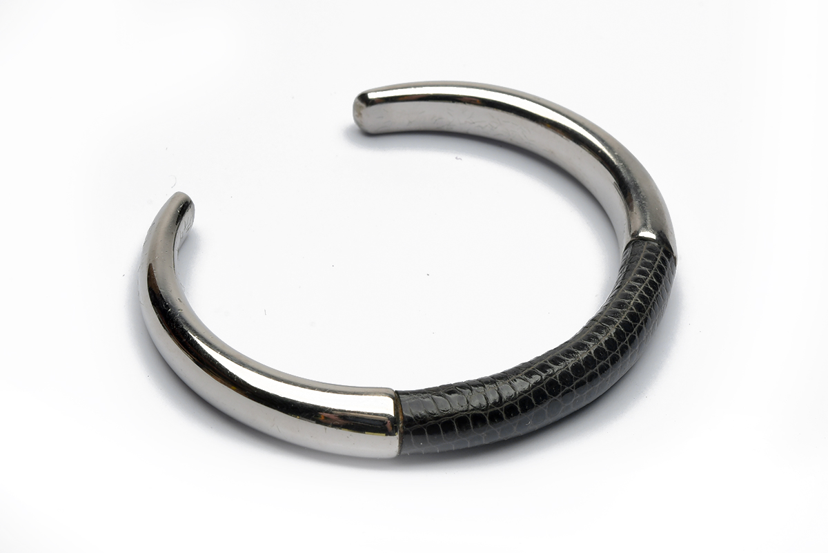 A HOLLAND & HOLLAND GOLD METAL AND SNAKE SKIN BOUND BRACELET,