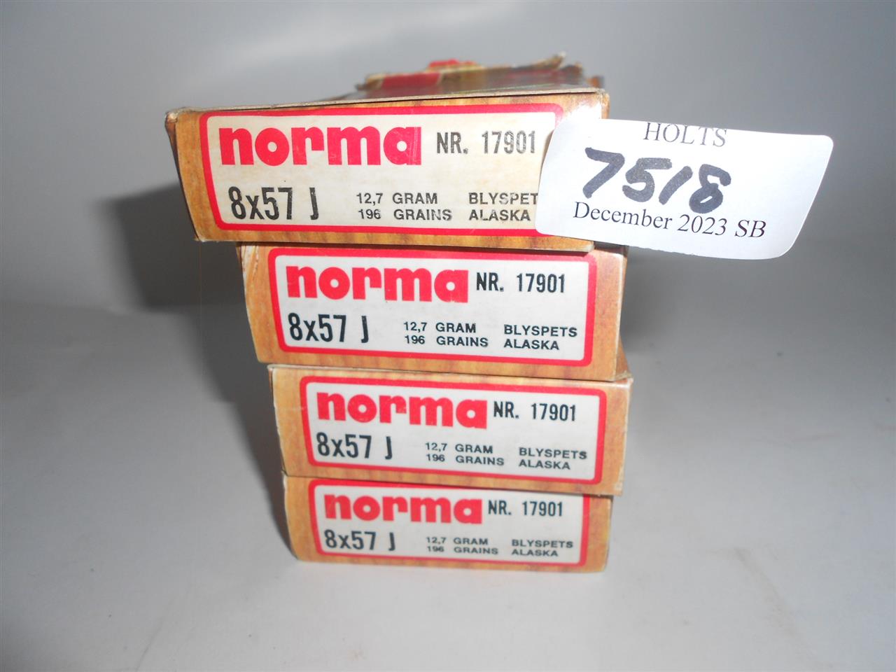 80 ROUNDS 8x57mm AMMUNITION BY NORMA, 196grn ALASKA #17901 BATCH B50991 Please be advised that cartridges/ammunition, primers, primed cases, blanks and percussion caps CANNOT BE SENT ANYWHERE in the UK or EXPORTED OVERSEAS by POST or CARRIER. Due to this NATIONAL and INTERNATIONAL CARRIER rule, we ask you to arrange with our shipping department a collection within 30 days of the sale date. A collection can be arranged for you to COLLECT at one of our regional valuation days on mainland UK, or, you would be most welcome to COLLECT from our offices at PE31 6HA in Norfolk. If payment and collection is not arranged within 30 days of the sale date, that will indicate that the items are not required and they will be offered in our next sale.