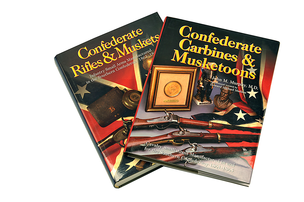 TWO REFERENCE BOOKS ON CONFEDERATE ARMS, the first on Confederate Rifles And Muskets containing over 760 pages of essential information together with Confederate Carbines And Musketoons both by John M Murphy and Howard M. Madaus, two standard reference works on the subject
