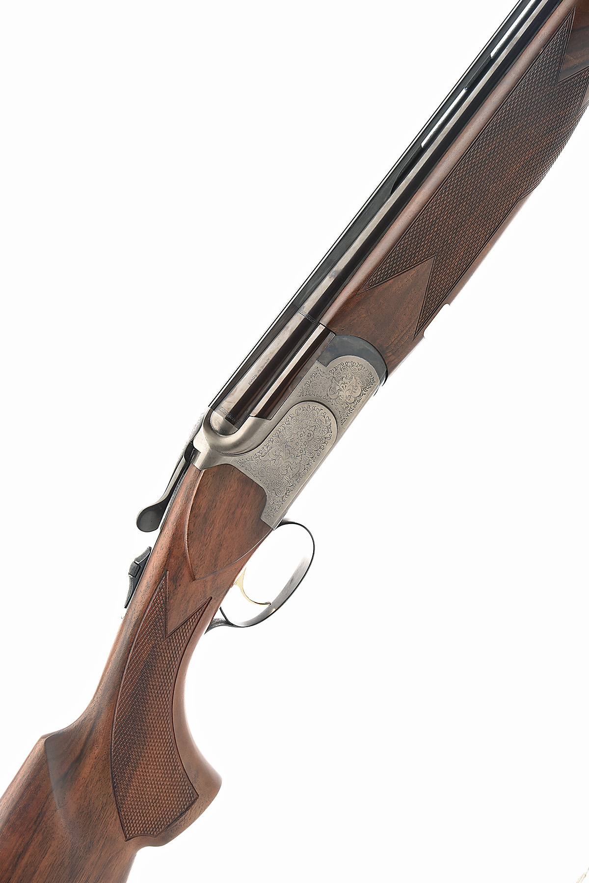 LANBER 12-BORE SINGLE-TRIGGER OVER AND UNDER EJECTOR, serial no. 06001, dated 1999, full Spanish number 13.03-06001-99-12-76, 29 1/2in. nitro barrels with 11mm ventilated matt top-rib, ventilated mid-rib, 3in. chambers, multichoke (no spares), hold-open toplever, manual safety with integral barrel-selector switch, gold-washed trigger, acanthus scroll and floral engraving, bright and blued finish, 13 3/4in. pistolgrip stock including rubber recoil pad, weight 8lb. 1oz.