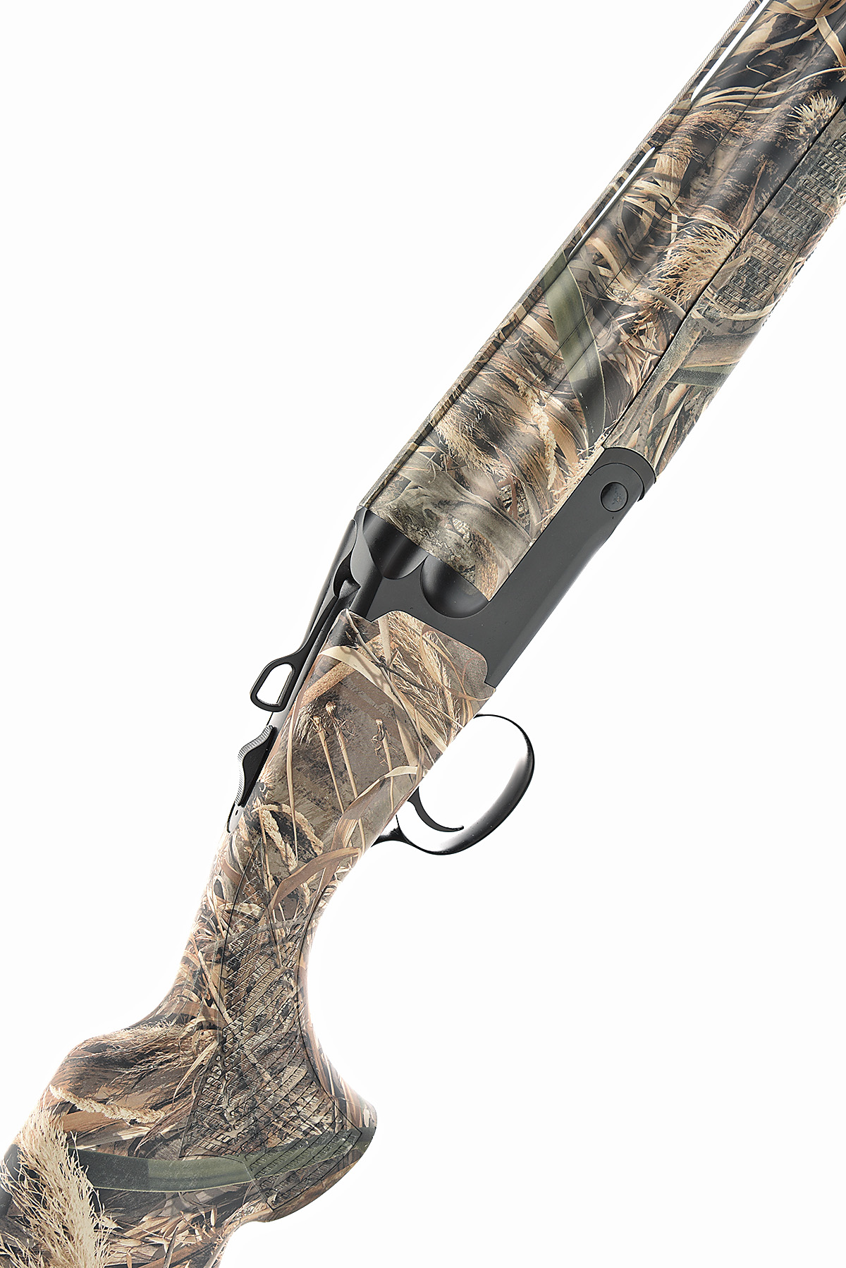 A VIRTUALLY NEW AND UNUSED AKKAR 12-BORE (3IN.) 'TRIPLE CROWN' TRIPLE-BARRELLED SINGLE-TRIGGER TRIGGERPLATE-ACTION NON-EJECTOR, serial no. 17600037, circa 2017, 30in. superior proofed nitro barrels set up in a pyramid configuration, 3in. chambers, multichokes (with two spares), pierced toplever, manual safety, blacked action, the barrels and stock covered in 'Realtree Max-5' camouflage-effect finish, 14 1/2in. synthetic pistolgrip stock including 3/8in. rubber recoil pad, sling eyes, weight 8lb. 13oz., in its makers universal case with cardboard outer