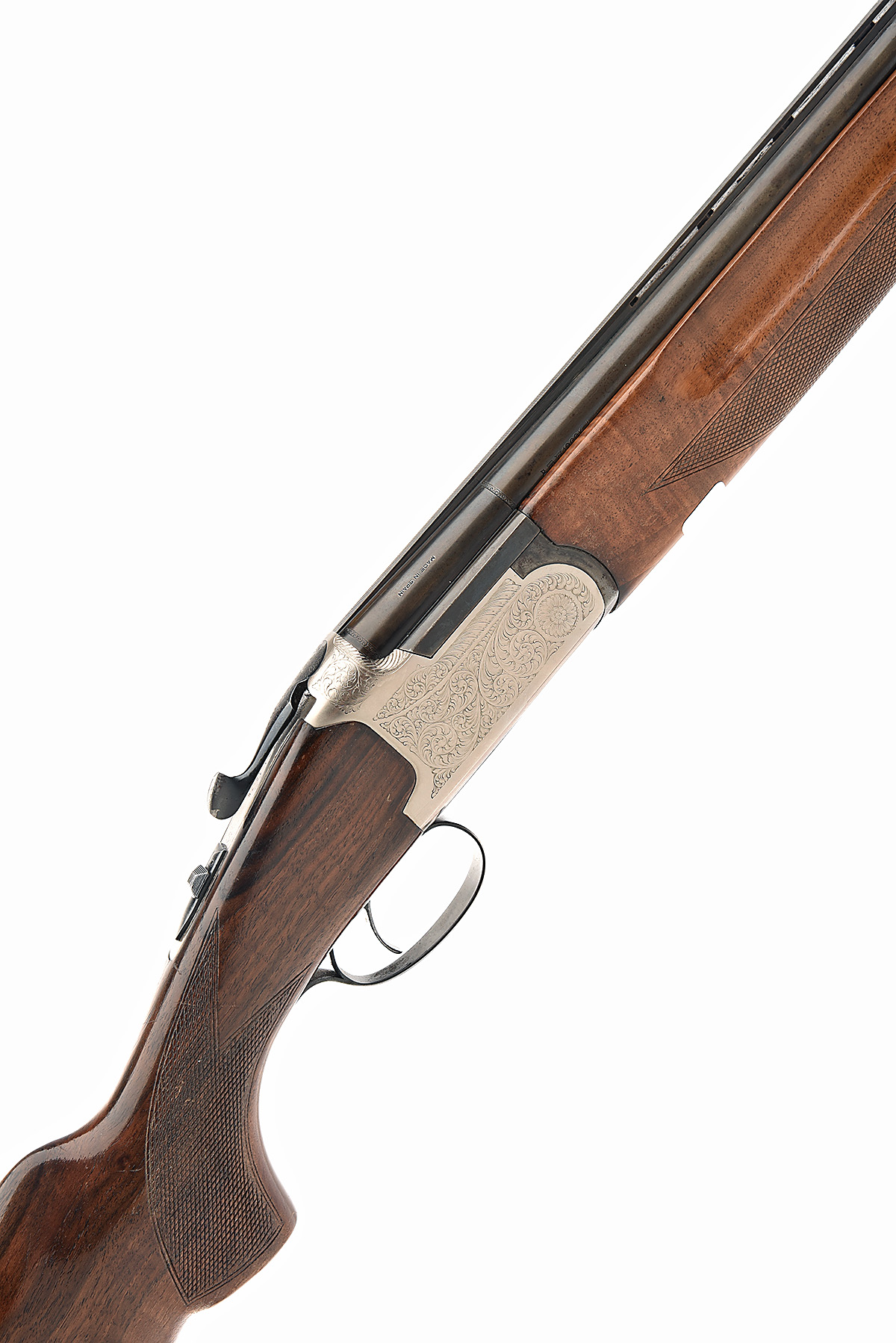 LANBER 12-BORE (3IN.) SINGLE-TRIGGER OVER AND UNDER NON-EJECTOR, serial no. 186581, dated 1981, 25in. nitro barrels with 6mm ventilated matt top-rib, 3in. chambers, bored approx. imp cyl. in both, hold-open toplever, automatic safety with integral barrel selector switch, acanthus scroll engraving, 14 1/2in. pistolgrip stock including 5/8in. extension