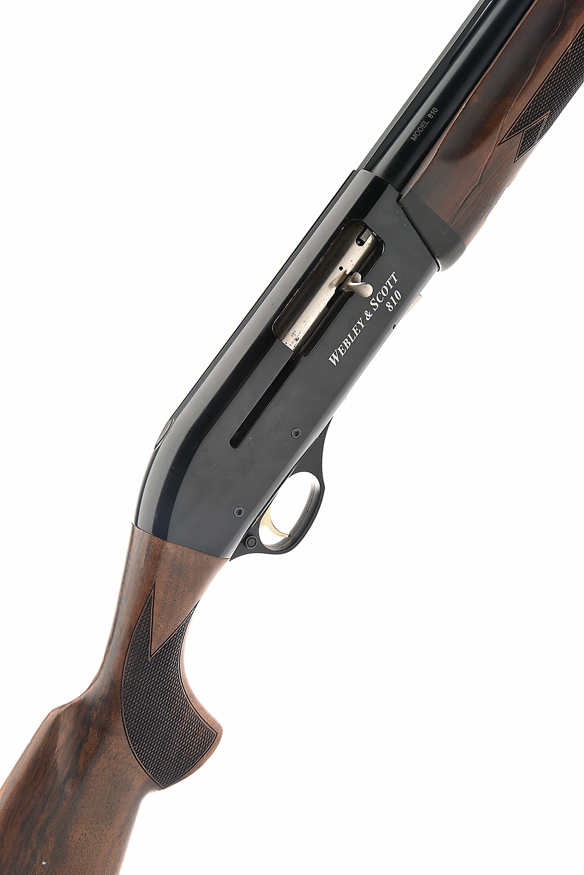 WEBLEY & SCOTT 12-BORE (3IN.) 'MODEL 810' SEMI-AUTO SHOTGUN, serial no. 7750541, circa 2006, restricted magazine, 28in. nitro barrel with 6mm ventilated matt rib, 3in. chamber, multichoke (no spares), manual push-button safety, gold-washed trigger, plain blacked action, 14 1/2in. figured pistolgrip stock including rubber recoil pad