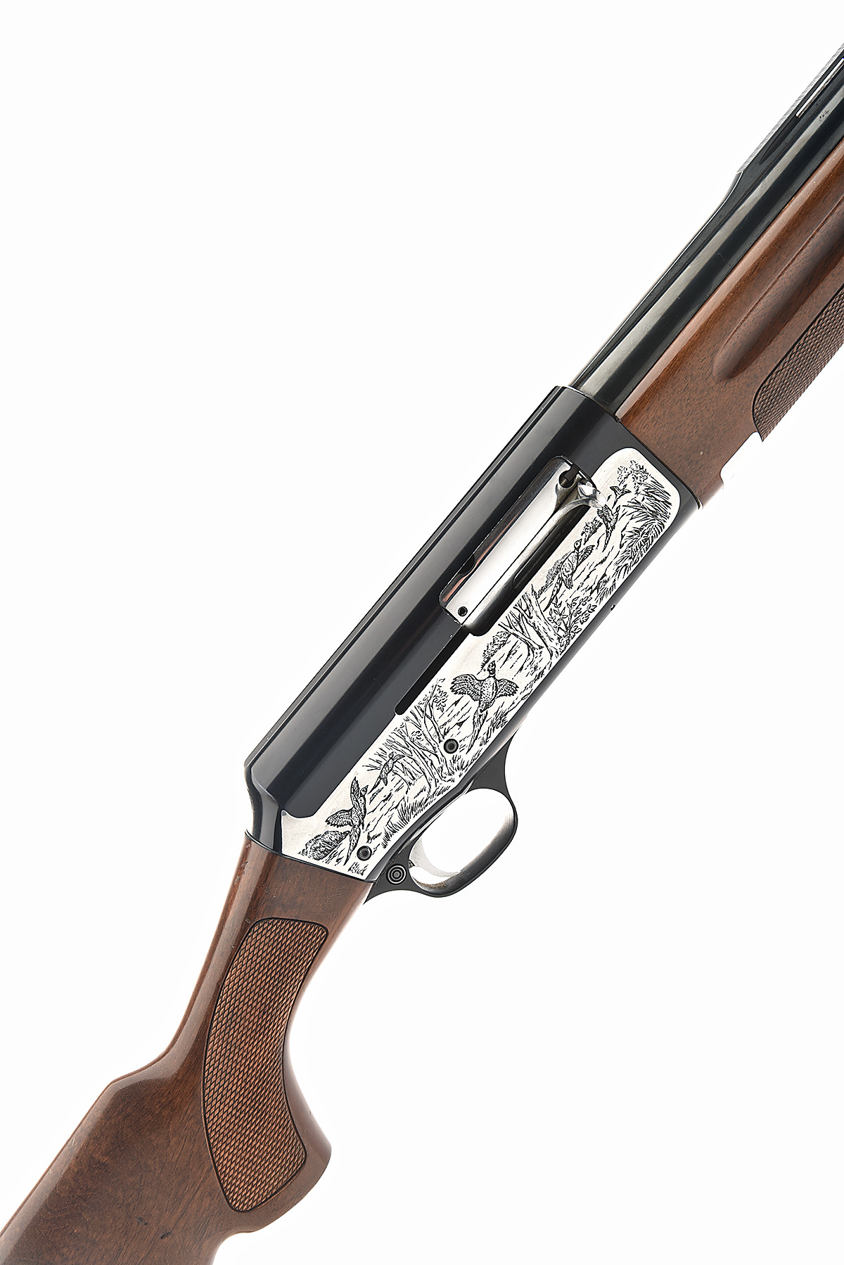S.P.A. LUIGI FRANCHI 12-BORE 'MODEL 48/AL HUNTER' SEMI-AUTO SHOTGUN, serial no. D91748, for 1979, restricted magazine, 28in. nitro barrel with 7mm raised ventilated matt rib, 2 3/4in. chamber, bored approx. 1/4 choke, barrel no. GGA3012, manual push-button safety, blacked action with silver side panels engraved with game scenes, 14 1/4in. pistolgrip stock including trademark buttplate