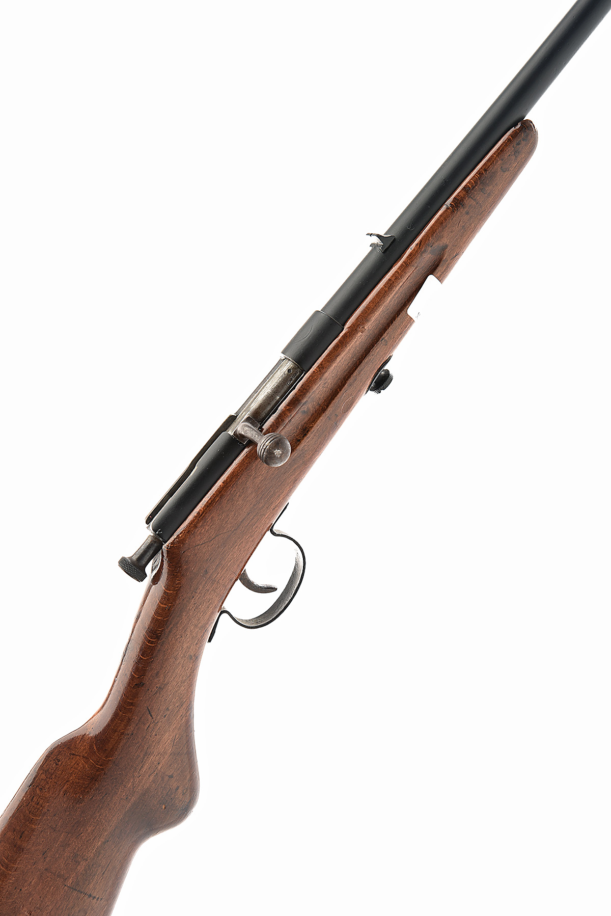 AN F.A.C J.G. ANSCHUTZ 9MM GLATT SINGLE-SHOT BOLT-ACTION GARDEN GUN, serial no. 295516, circa 1940, 19 3/4in. barrel, dove-tailed blade fore-sight, standing notch rear sight, 13 1/2in. pull