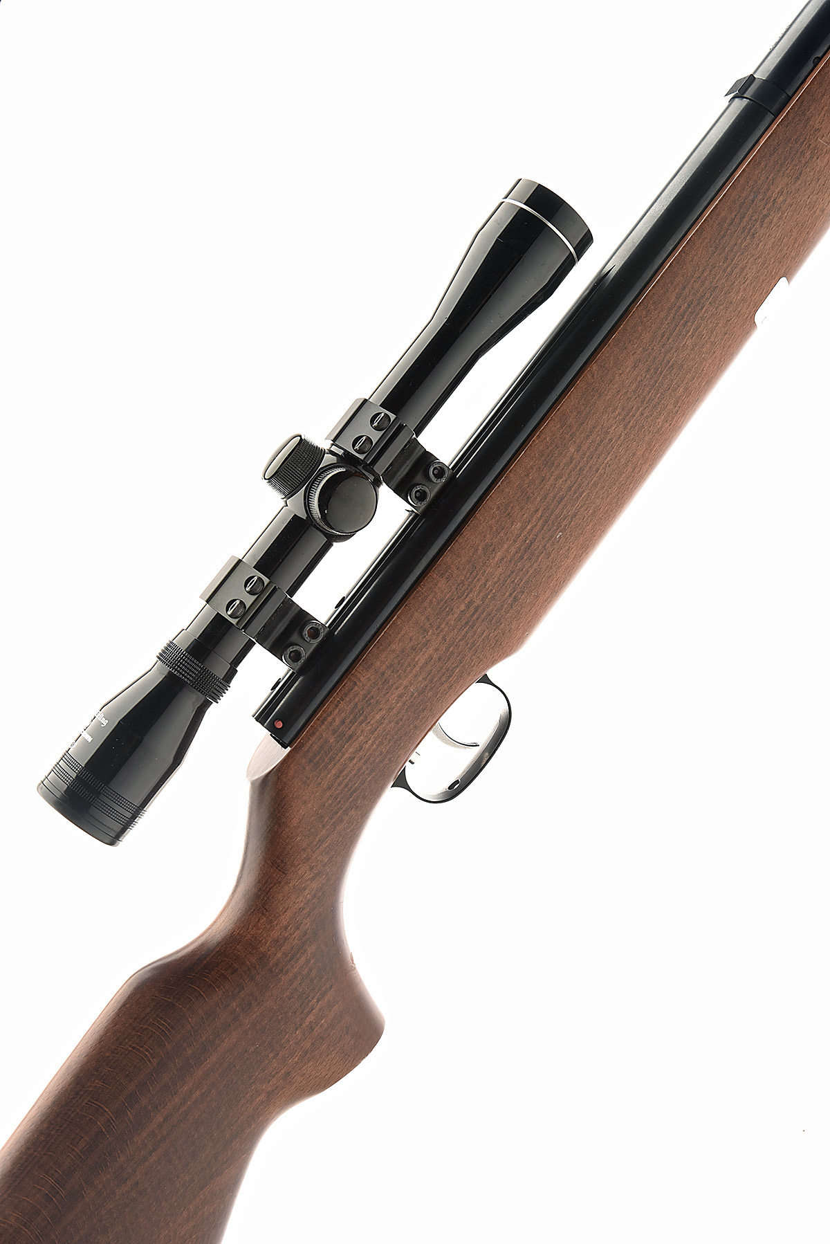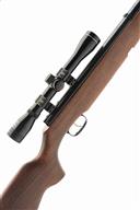 A .177 UNDER-LEVER AIR RIFLE SIGNED WEIHRAUCH, MODEL 'HW57', serial no. 1654583, blued 14 1/2in. barrel, pop-up breech, blued air-chamber and chequered beech half-stock, fitted with a Nikko Sterling Silver Crown 4x32 telescopic sight,