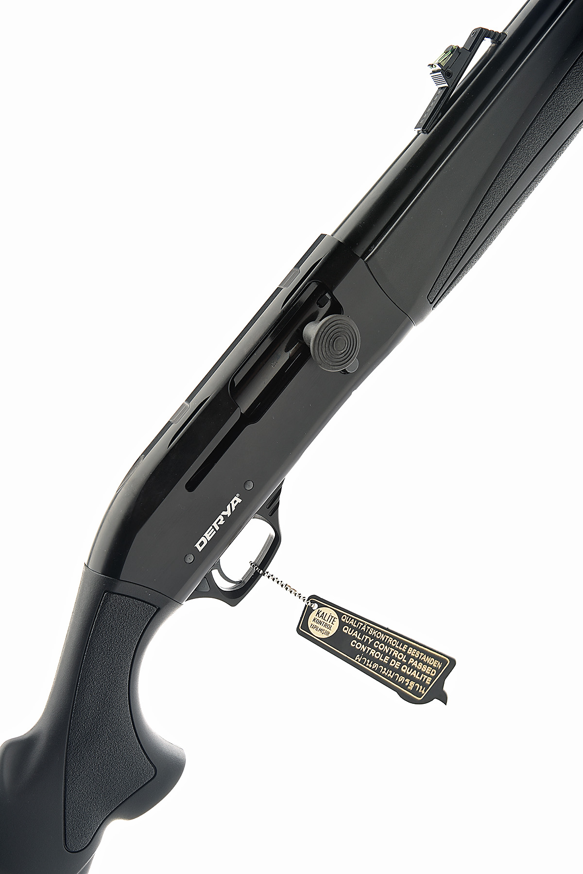 A VIRTUALLY NEW AND UNUSED DERYA 12-BORE (3IN.) SEMI-AUTO SHOTGUN, serial no. 19-RG1013, for 2019, restricted magazine, 28in. ribless superior proofed nitro barrel, ramp-mounted high-visibility fore-sight, ramped high-visibility rear-sight, 3in. chamber, multichoke (with spares), manual push-button safety, magazine cut-off switch, 14 1/4in. synthetic pistolgrip stock including rubber recoil pad, weight 7lb. 4oz., the whole in matt black finish, in its makers cardboard carton with some paperwork