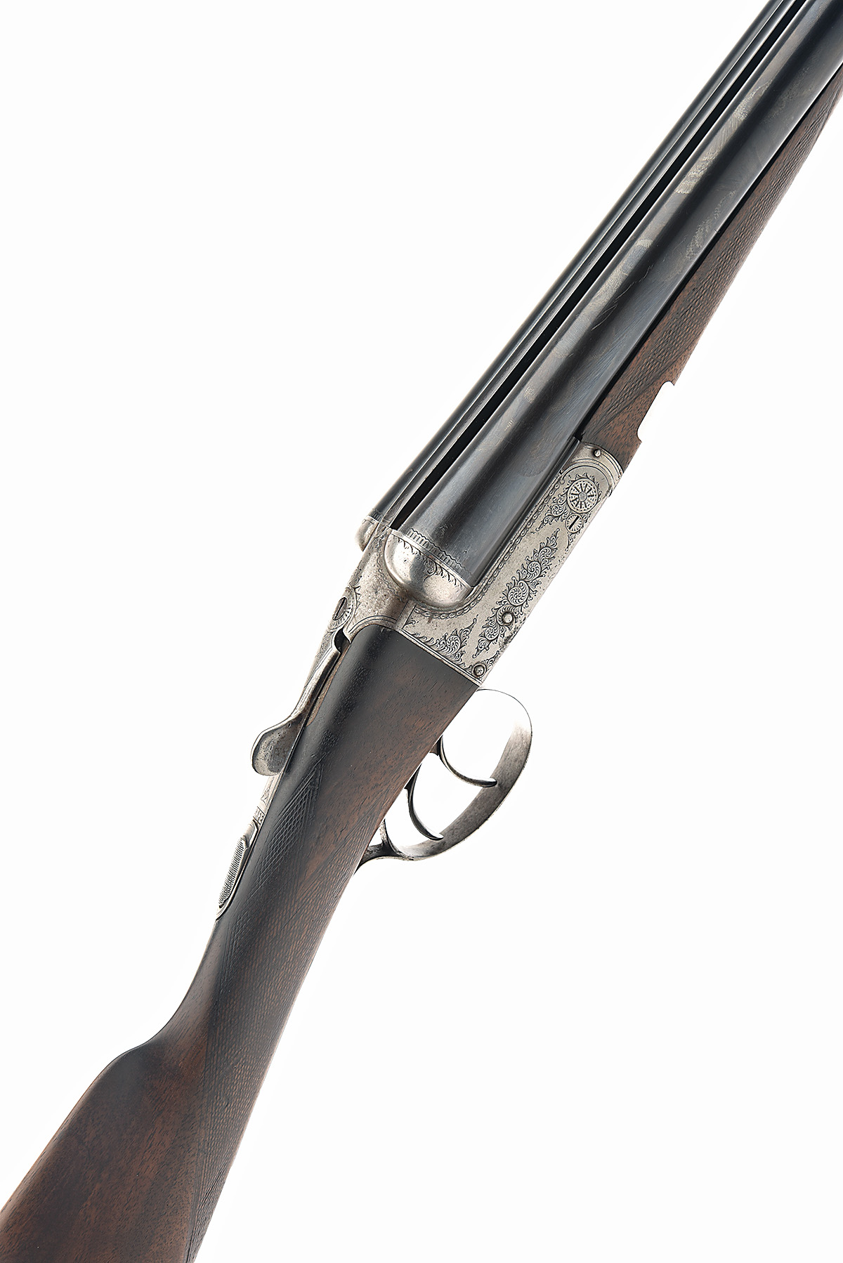 CHARLES HELLIS 12-BORE BOXLOCK EJECTOR, no visible serial number, circa 1930, 28in. nitro reproved (in 1954) barrels, the rib engraved 'CHARLES HELLIS. EDGWARE ROAD. LONDON.', 2 1/2in. chambers. bored approx. 1/4 and 3/4 choke, automatic safety with engraved 'SAFE' detail, border and acanthus scroll engraving, bright finish, 15 1/4in. stock
