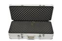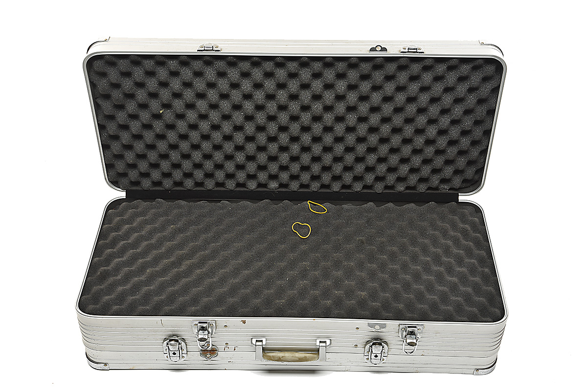 A WINCHESTER ALUMINIUM DOUBLE TRAVEL TAKE-DOWN GUNCASE, double sided case with foam lined interior, measuring approx 31in. x 13in. 4 x clasp lock (keys missing, 2 x padlock fixing points