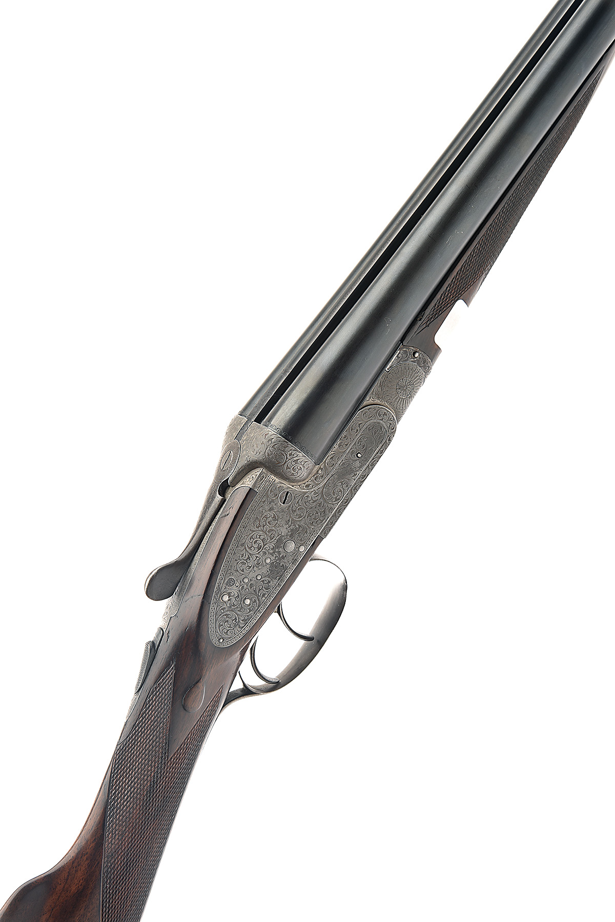 CHARLES HELLIS 16-BORE SIDELOCK EJECTOR, serial no. 3333, circa 1926, 28in. replacement nitro barrels (slightly loose on action), the rib engraved 'DARLOW & CO. NORWICH', 2 1/2in. chambers, bored approx. 1/2 and full choke, treble-grip action, automatic safety with silver-inlaid 'SAFE' detail, bold acanthus scroll engraving with beaded bordering, 14 1/2in. figured stock including 3/4in. wooden extension, weight 6lb. 2oz.