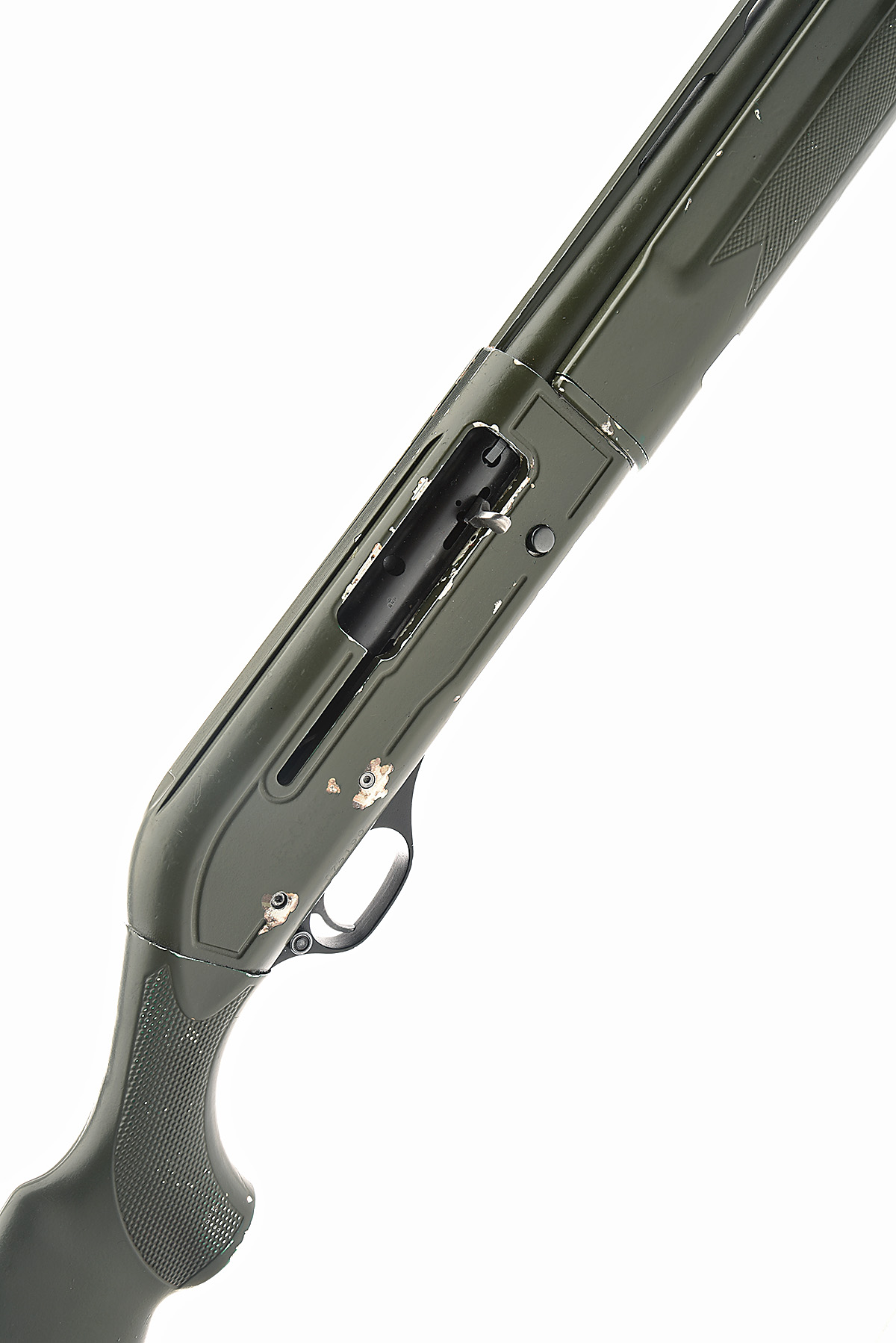 HATSAN 12-BORE (89MM) 'ESCORT MAGNUM' SEMI-AUTO SHOTGUN, serial no. 075190, circa 2007, restricted magazine, 30in. steel-shot proved nitro barrel with 7mm ventilated matt rib, 89mm chamber, multichoke (no spares), manual push-button safety, magazine cut-off switch, 14in. synthetic pistolgrip stock including rubber recoil pad, the whole in DIY applied green finish