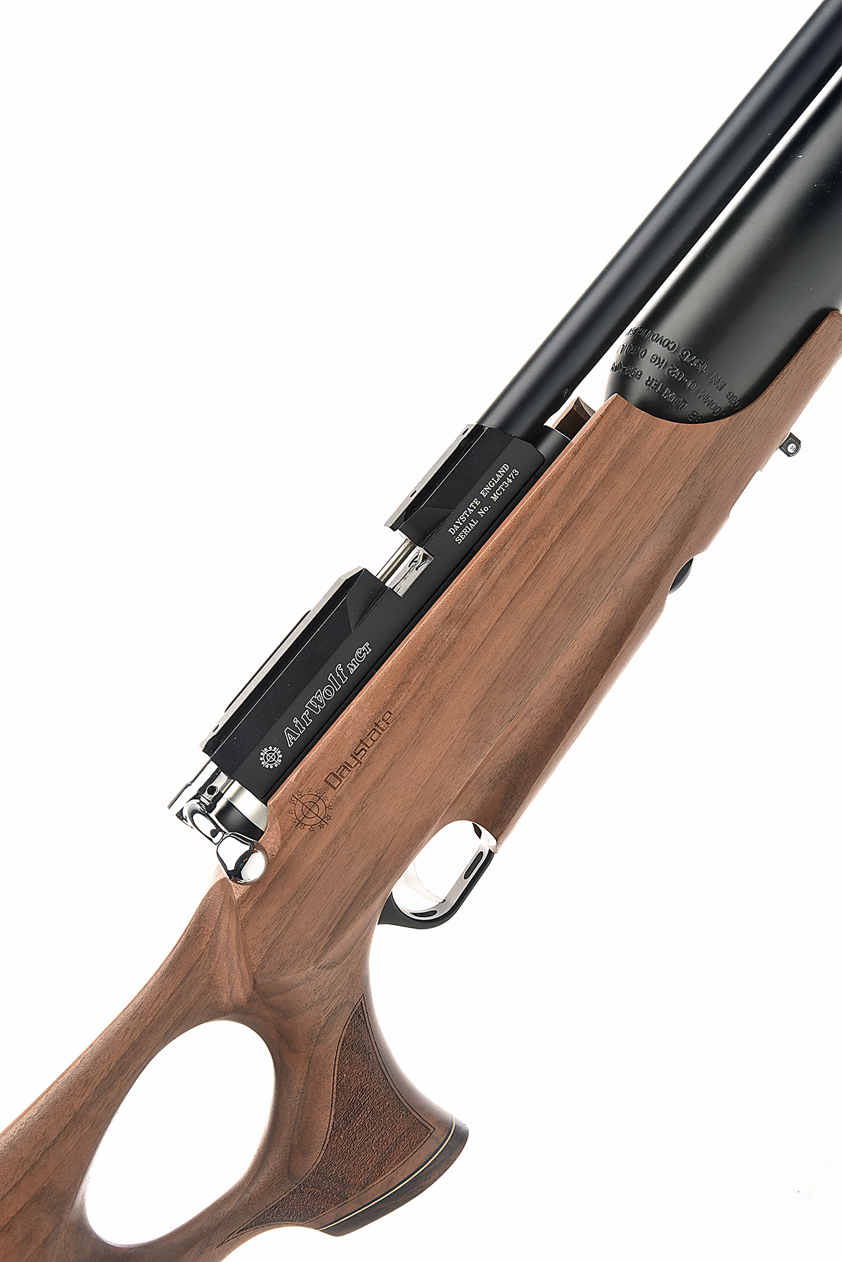 A .22 PRE-CHARGED PNEUMATIC AIR-RIFLE SIGNED DAYSTATE, MODEL AIRWOLF ELECTRONIC, serial no. MCT3473,