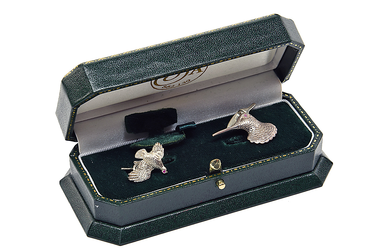 A SET OF SILVER WOODCOCK AND GREY PARTRIDGE CHAIN CUFFLINKS,