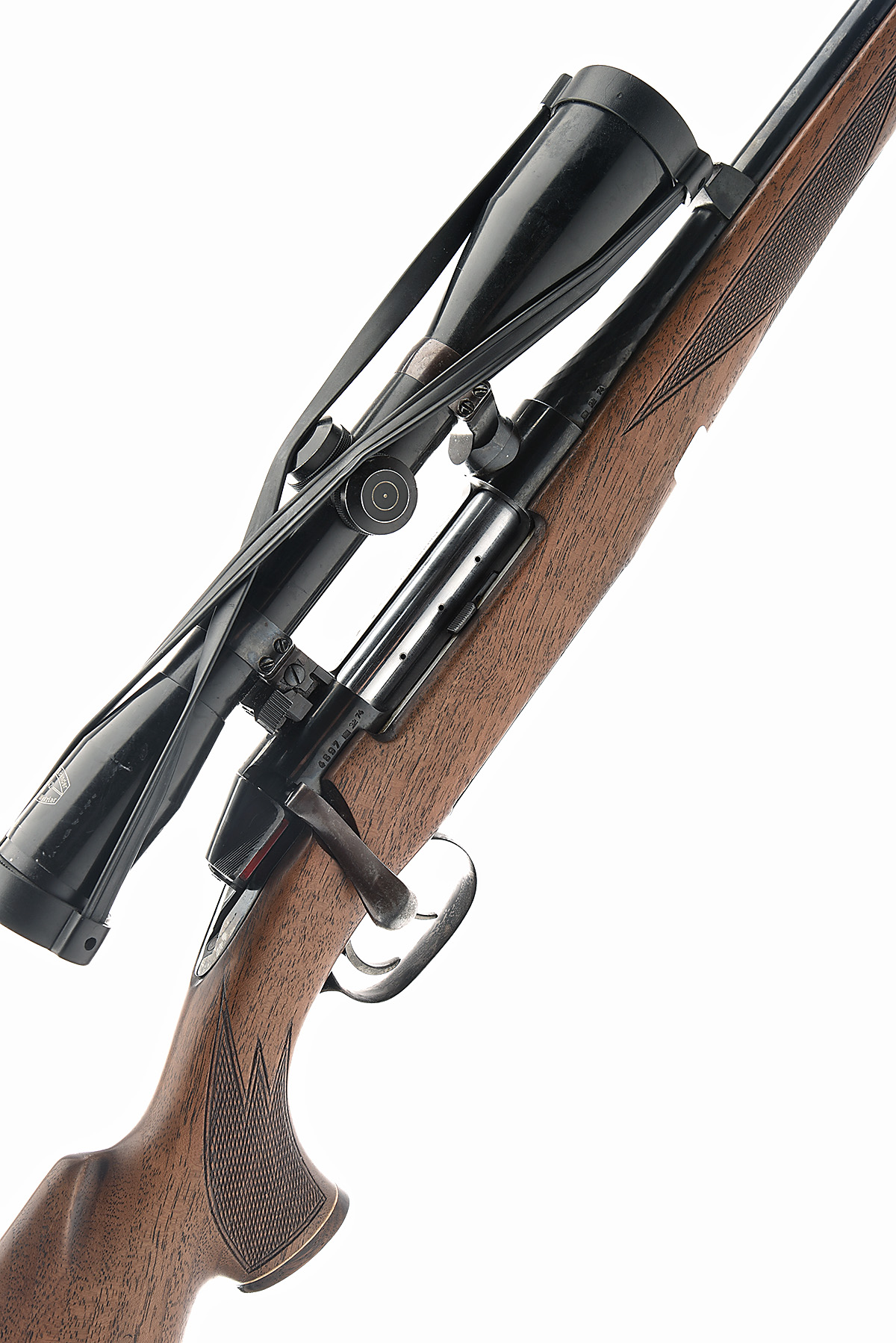 ** MANNLICHER SCHOENAUER 6.5X57 'M72' BOLT-MAGAZINE STUTZEN SPORTING RIFLE, serial no. 4897 for 1974, 20in. nitro barrel, open sights removed, ramp-mounted bead fore-sight, the receiver mounted with a Schmidt & Bender 6x42 telescopic sight, serial no. 21607, set triggers, losses to blued finish, pistolgrip stock with cheekpiece and monte carlo comb, sling swivels, 14 1/8in. pull including 7/8in. recoil pad