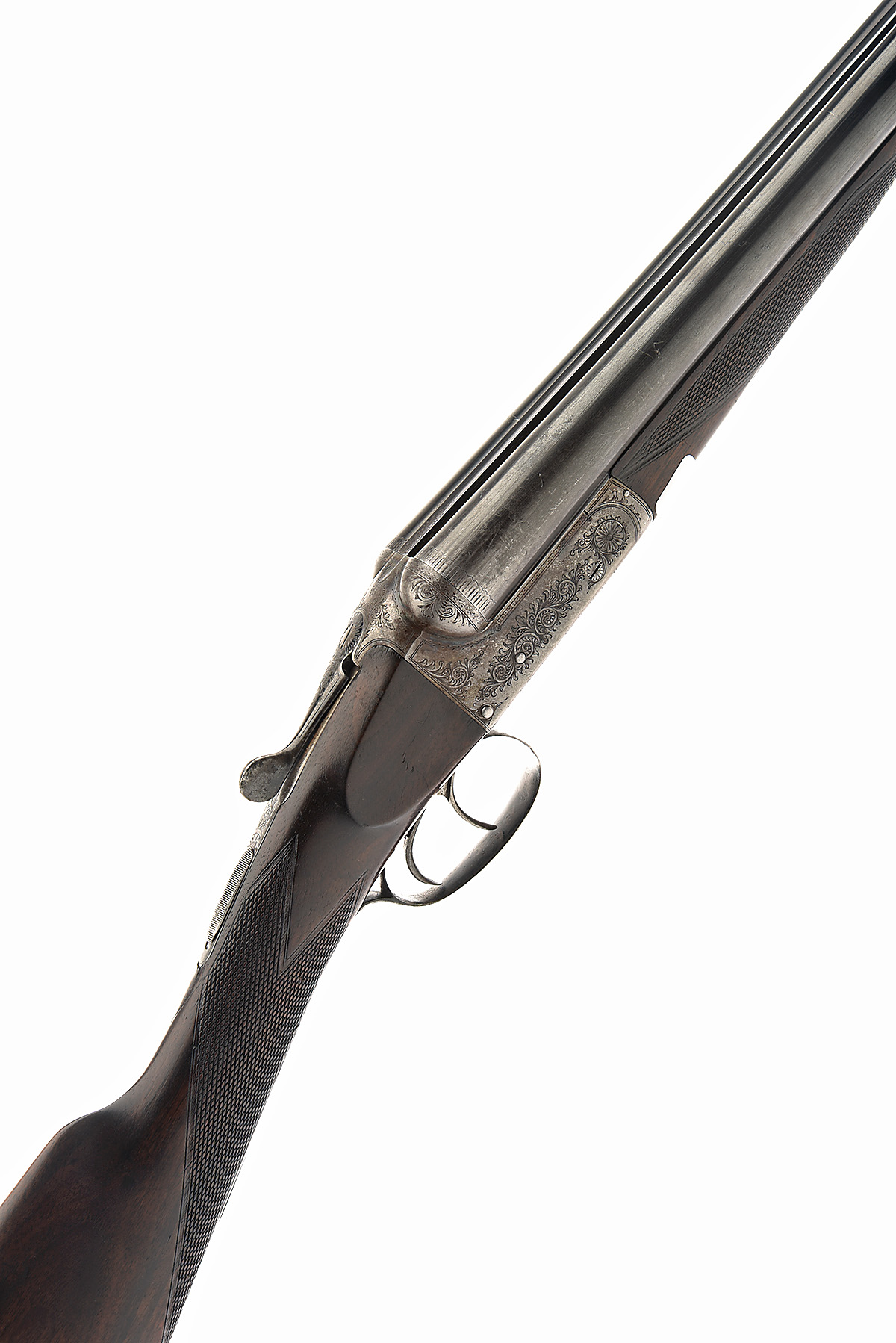 EDWARD GALE & SON 12-BORE BOXLOCK EJECTOR, serial no. 6073, dated 1928, 28in. nitro barrels, rib engraved 'EDWARD GALE & SON. BARNSTAPLE' (rib loose), 2 1/2in. chambers, bored approx. true cyl. and full choke, unsigned action, automatic safety, border and acanthus scroll engraving, retaining traces of original colour-hardening and finish, 16in. stock including 2in. wooden extension, weight 7lb. 2oz.