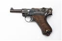 dated for 1921, with shortened 2 3/4in. blued barrel, dove-tailed fore-sight, DWM marked toggle, shortened frame, the front-strap originally marked 'S.D.H.' (now struck out), sock-board lug removed and magazine shortened accordingly with frame, chequered walnut grips, refinished, all matching visible numbers, with certificate of proof.