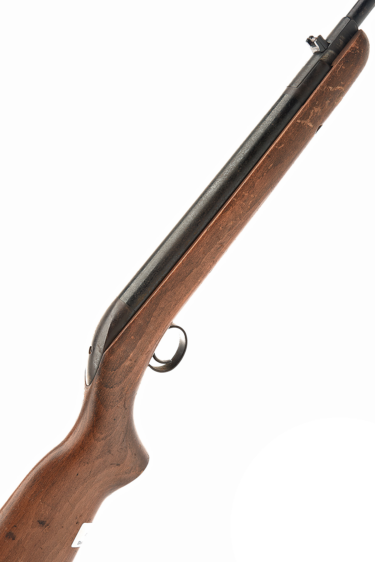 with 18 1/2in. barrel, plain air-chamber and beech half-stock, finish worn