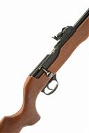 AN SMK .22 CO2-POWERED AIR-RIFLE, MODEL RABBIT DESTROYER, no visible serial number, with 21 3/4in. blued barrel, blacked bolt-action receiver, under-barrel reservoir and beech half-stock, untested