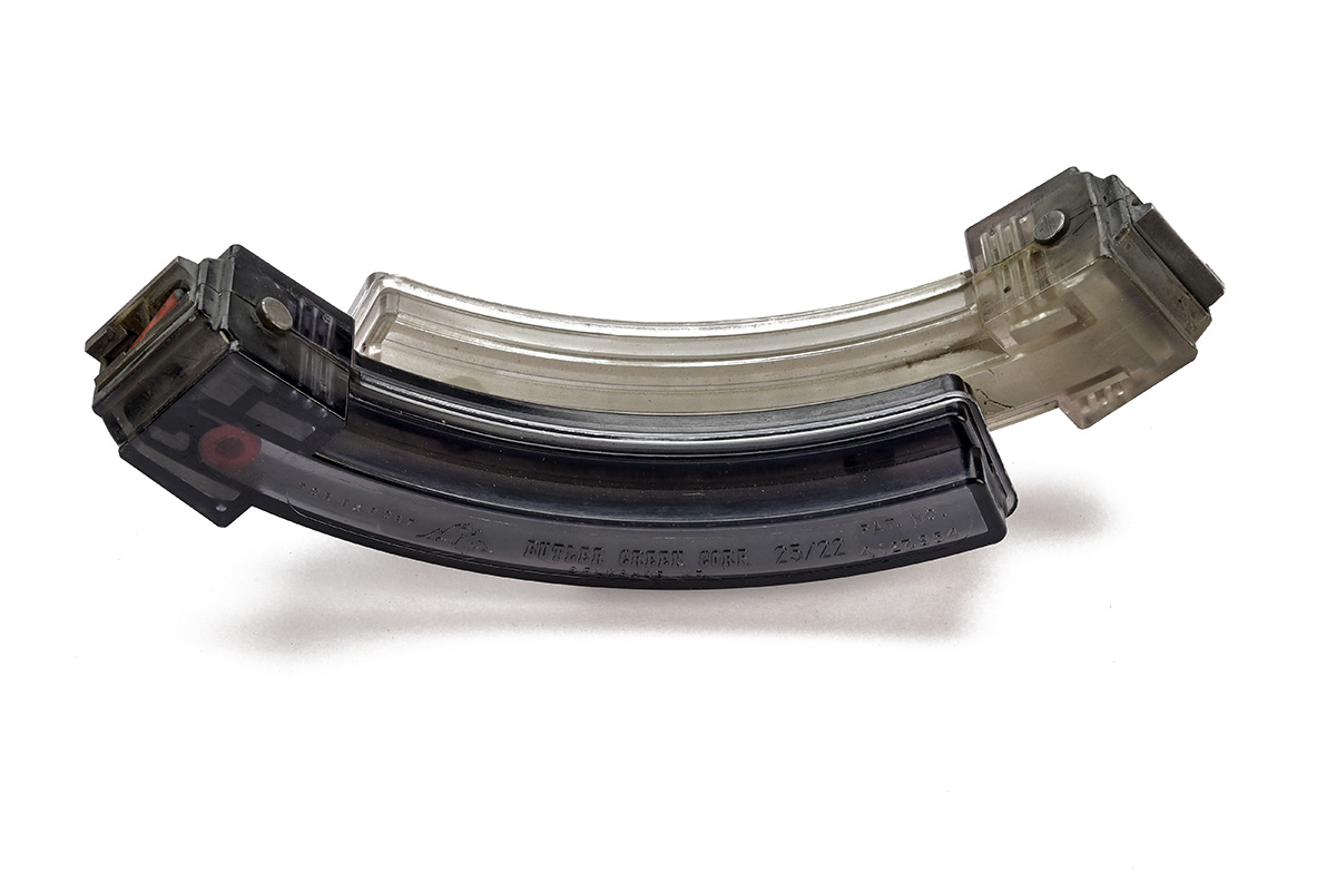A PAIR OF 'BUTLER CREEK 25/22 EXTENDED BANANA MAGAZINES, pat no. 4, 127,954
