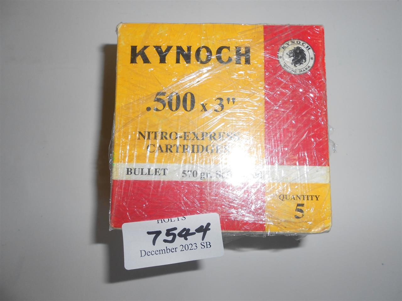 20 ROUNDS .500 x 3in. NITRO EXPRESS AMMUNITION BY KYNAMCO, 570grn. SOFT NOSE Please be advised that cartridges/ammunition, primers, primed cases, blanks and percussion caps CANNOT BE SENT ANYWHERE in the UK or EXPORTED OVERSEAS by POST or CARRIER. Due to this NATIONAL and INTERNATIONAL CARRIER rule, within 30 days of the sale date, please arrange collection with our shipping department from our Norfolk HQ. If payment and collection is not arranged within 30 days of the sale date, that will indicate that the items are not required and they will be disposed of.