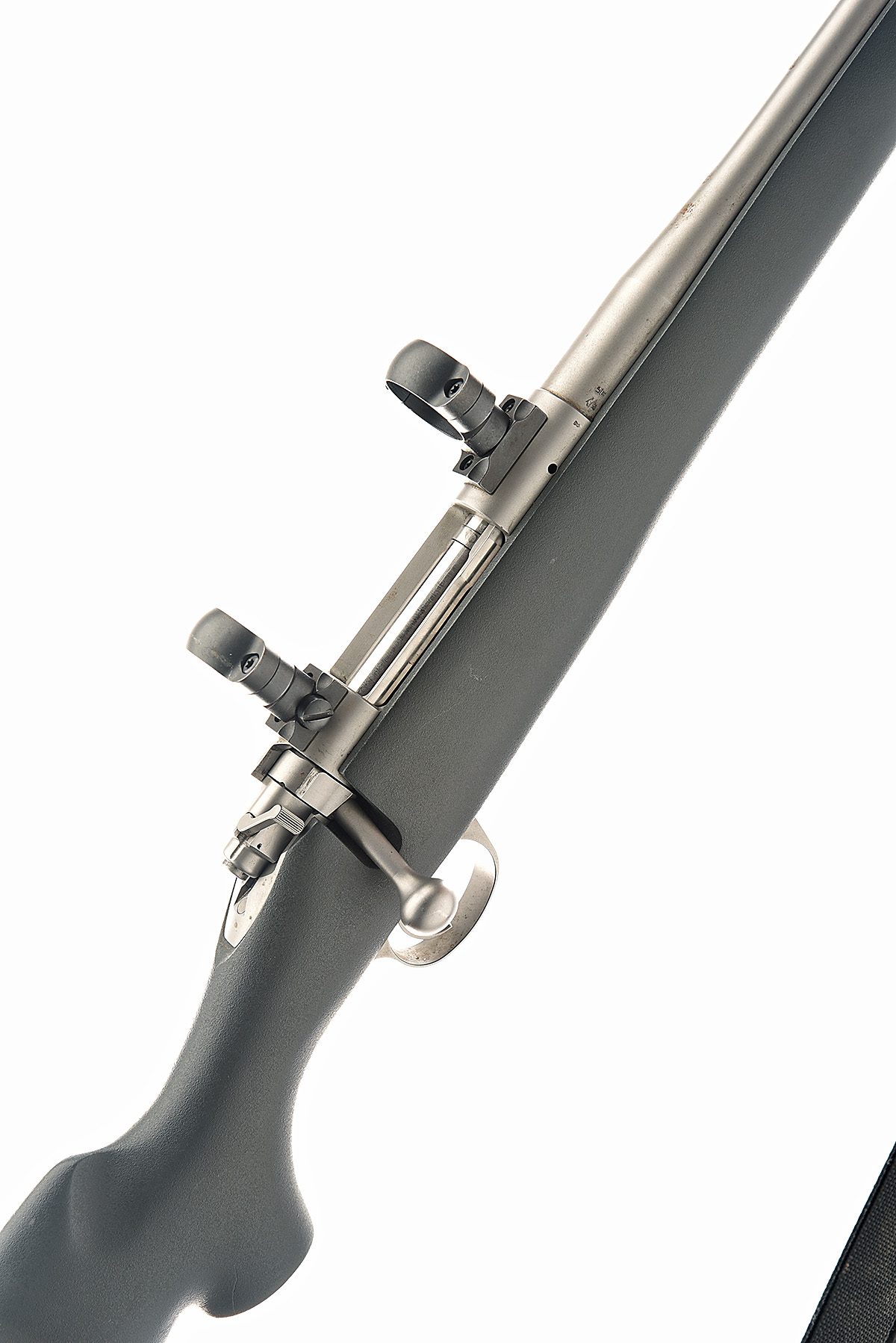 KIMBER .243 WIN '84M' BOLT-MAGAZINE SPORTING RIFLE, serial no. KM34081, circa 2011, 22in. unsighted nitro barrel, threaded for sound moderator, 28mm scope rings, manual safety, pistolgrip synthetic stock, canvas sling