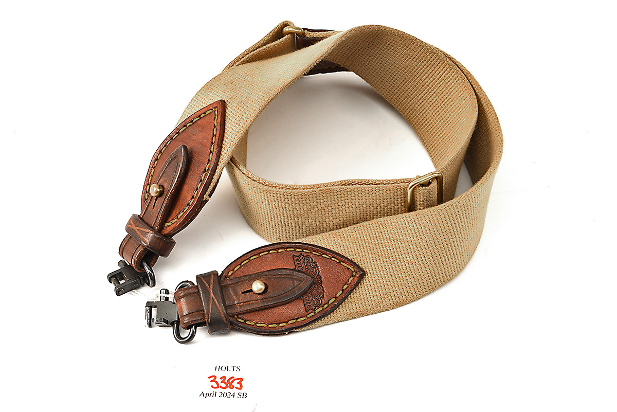 A VIRTUALLY NEW AND UNUSED ELS & CO. 'THE NIEU-BETHESDA' BIG BORE RIFLE SLING, hand-stitched handle with wax-coated cotton thread, 2in. wide canvas, brass fittings, some marks to the canvas