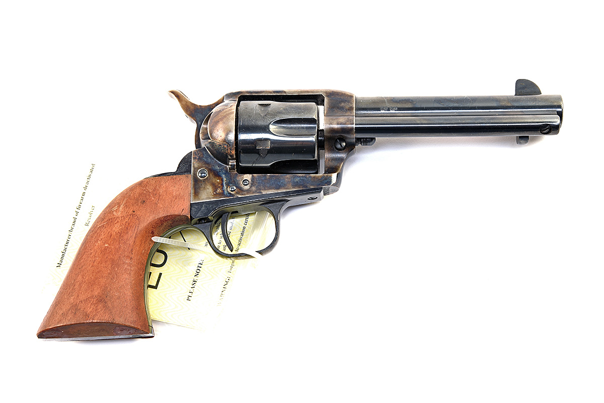 A DEACTIVATED UBERTI 9MM 'MOD.1830 - COLT' SINGLE-ACTION ARMY REVOLVER, serial no. U35093, for 2011, 5 3/4in. blued barrel, crescent fore-sight, solid colour-hardened frame, the left side marked 'PAT.SEPT.19.1871. PAT.JULY.2.1872.', walnut grips, with its 2025 EU deactivation certificate