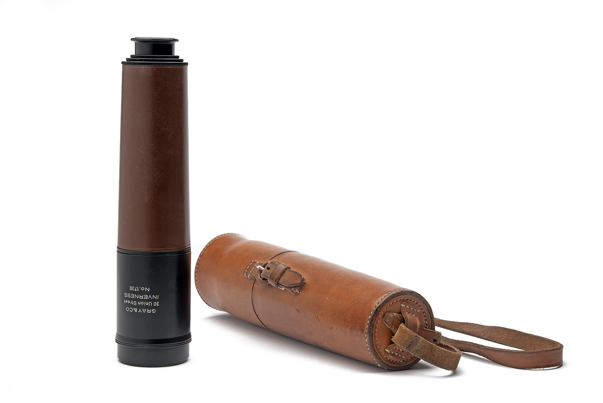 GRAY & CO. (INVERNESS) A LEATHER-BOUND THREE-DRAW STALKING TELESCOPE, serial no. 1730,
