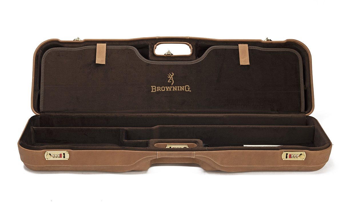 BROWNING AN UNUSED SUEDE OVER AND UNDER DOUBLE GUNCASE,