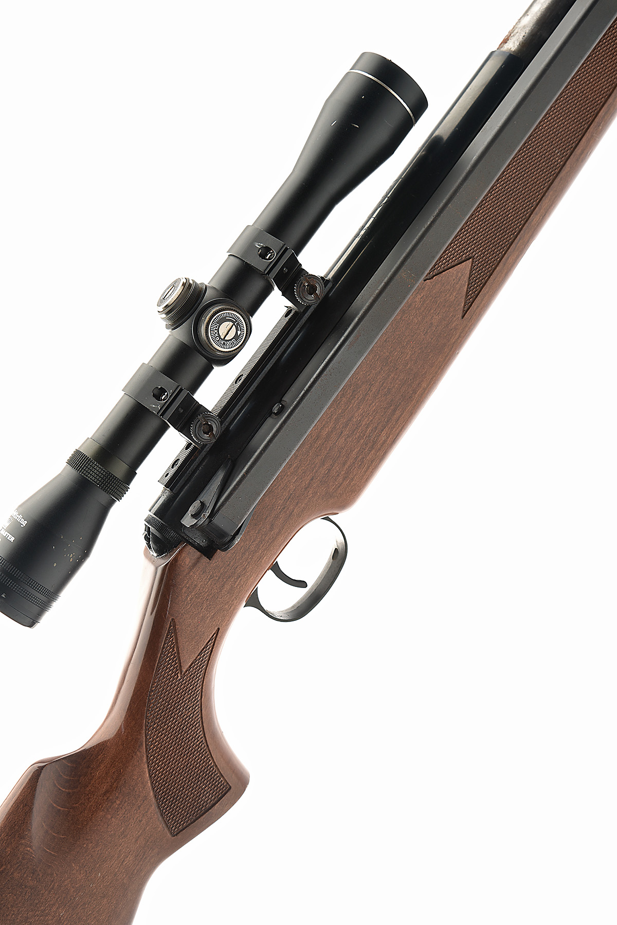 A .22 SIDELEVER-COCKING AIR-RIFLE, SIGNED DIANA 'MODEL 48/52', serial no. 02014835, 17in. barrel, ramp-mounted blade fore-sight, adjustable open rear sight, receiver fitted with a Nikko Sterling Mount Master 4x32 telescopic sight, blued finish, walnut pistolgrip halfstock with cheekpiece, 14in. pull including rubber recoil pad