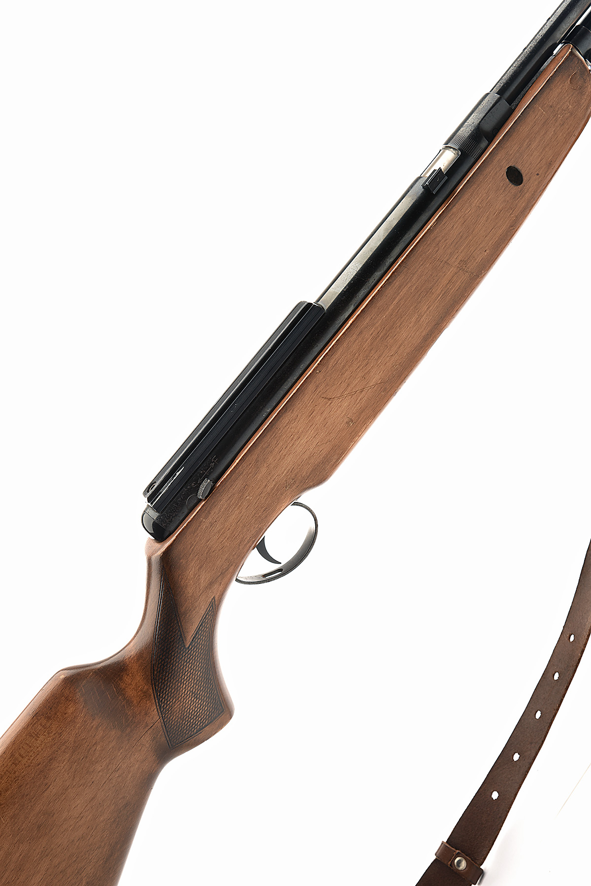 A .22 UNDERLEVER-COCKING AIR-RIFLE, SIGNED B.S.A. GUNS LTD. 'MODEL SUPERSTAR', serial no. RH09293, 19in. unsighted barrel, air chamber with sight rail, blued finish, beech pistolgrip halfstock with cheekpiece, 13 3/4in. pull including ventilated rubber recoil pad, sling