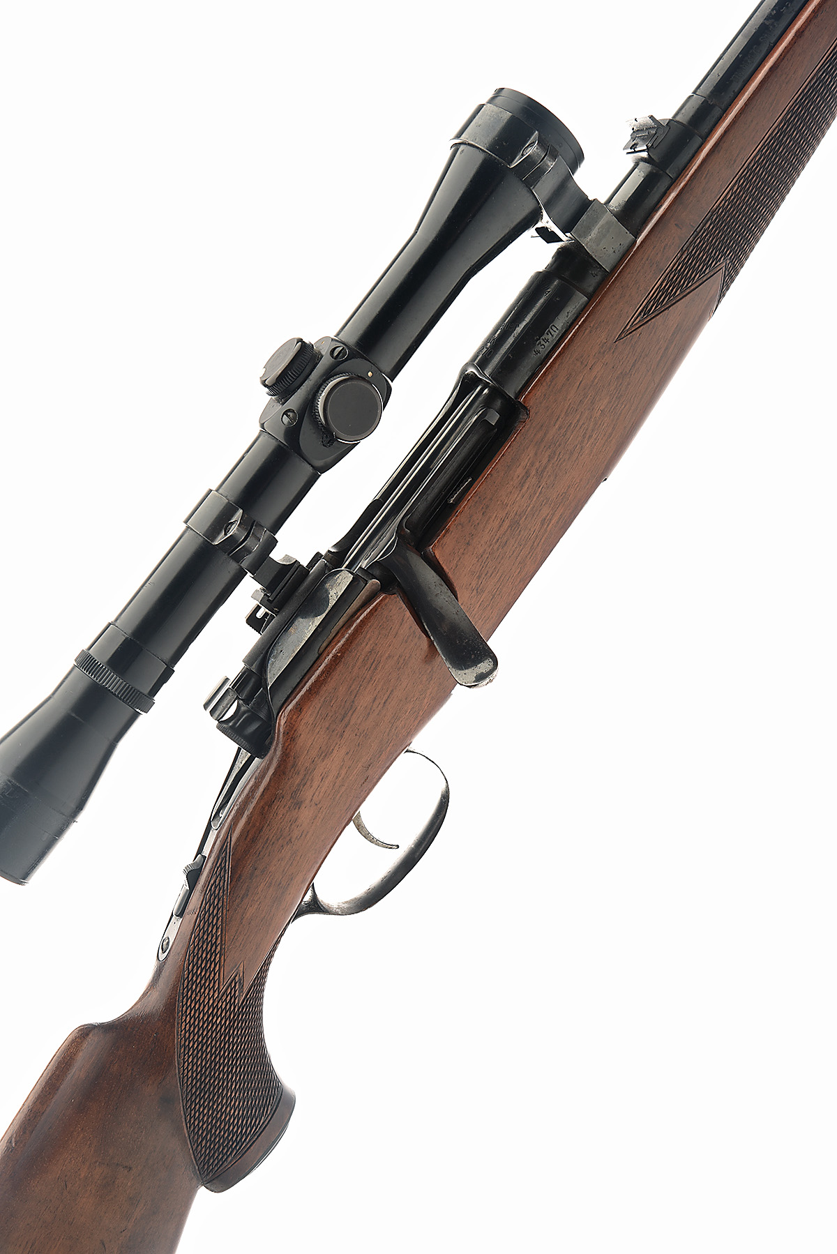 STEYR-DAIMLER-PUCH .270 WIN 'MODEL GK' BOLT-MAGAZINE SPORTING RIFLE, serial no. 43470, circa 1964, 24in. nitro barrel, ramp-mounted bead fore-sight, leaf rear-sight with 1 x folding leaf rear-sight, receiver ring marked ' MADE IN AUSTRIA ORIGINAL MANNLICHER SCHOENAUER MOD GK .270', fitted with a Pecar 4x81 light telescopic sight, manual tang and flag safety, detachable floor plate, figured pistolgrip stock with cheekpiece