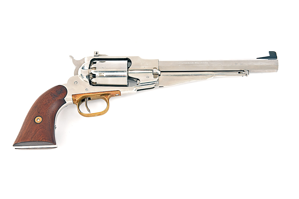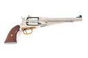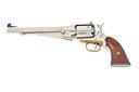 A BOXED REPRODUCTION PIETTA .44 PERCUSSION STAINLESS REMINGTON ARMY REVOLVER, serial no. R394566, with octagonal 8in. barrel, adjustable sights, solid frame with plain cylinder and smooth walnut grips, appearing little used in its maker's card and polystyrened carton (carton worn)