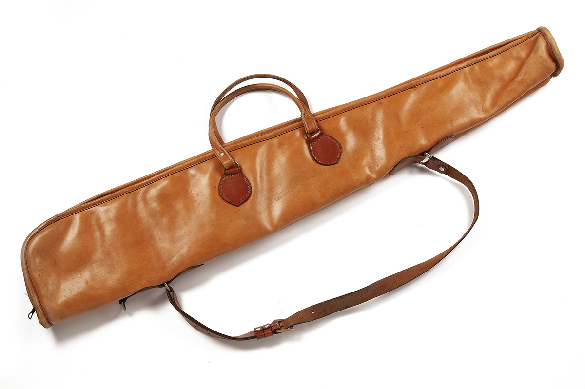 JOHN WARD (GUNSMITHS) A TAN LEATHER FLEECE-LINED DOUBLE GUNSLIP,