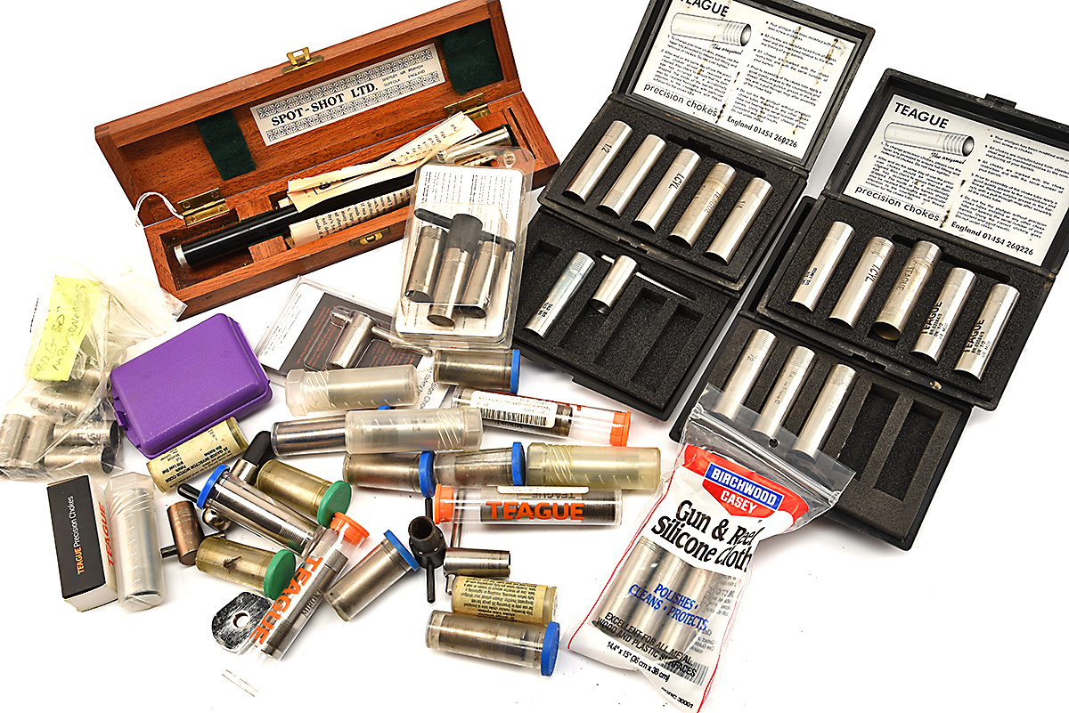 A QUANTITY OF 12 GAUGE CHOKES, various sizes of 12 gauge teague & briley chokes both complete and incomplete kits also includes a shot spot.