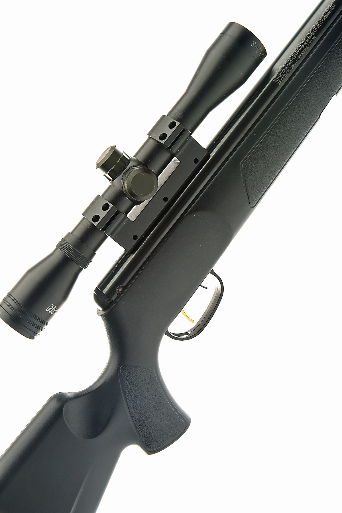 A CROSMAN .22 PHANTOM MKII BREAK-BARREL AIR-RIFLE, serial no. D15X01777, with blued fully moderated18 3/4in. barrel, blued air-chamber and abs plastic half-stock with stippled grip-panels, appearing little used and fitted with a Hawke 4x32 telescopic sight
