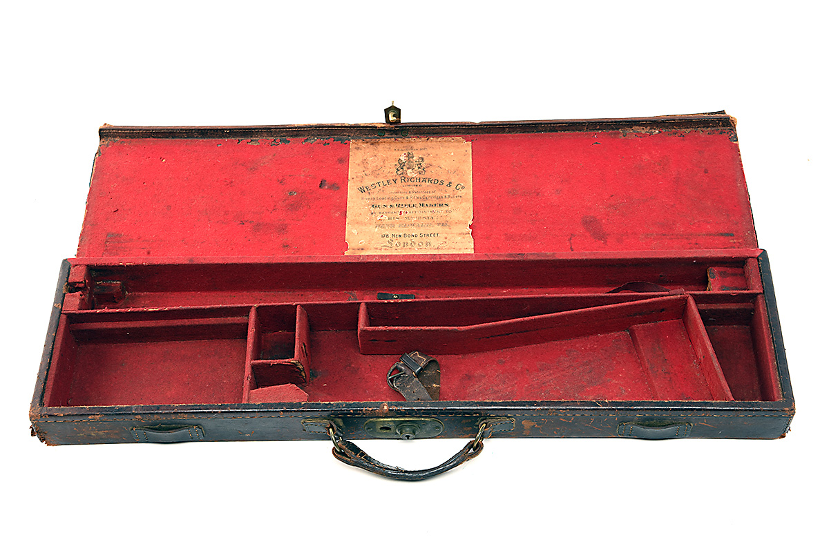 A WESTLEY RICHARDS LEATHER SINGLE GUNCASE, fitted for 30in. barrels, the interior lined with red baize, a Westley Richards & Co. trade label, brass lock (key missing)