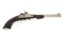 A REPRODUCTION ARMI SPORT .45 PERCUSSION 'LE-PAGE' PISTOL, serial no. L71622, with in the white octagonal 9 3/4in. barrel retro-fitted with later adjustable sights, engraved bar-action lock, walnut half-stock with fluted grip and replacement trigger