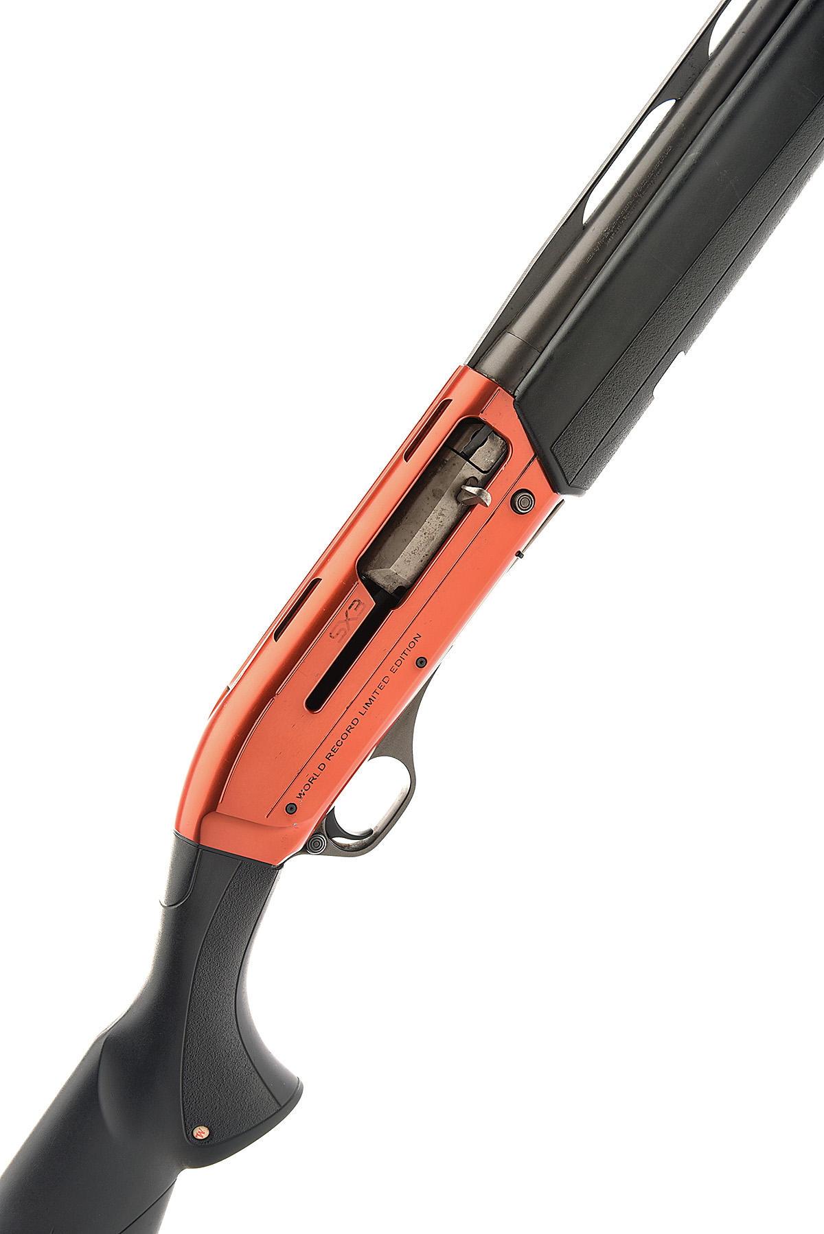 AN F.A.C. WINCHESTER 12-BORE (3IN.) 'SX3 RANIERO TESTA' 12-SHOT SEMI-AUTO SHOTGUN, serial no. 11HZW13680, circa 2015, extended tubular magazine, 30in. nitro reproved barrel (in 2023), with 6mm raised ventilated matt top rib, 3in. chamber, multi-choke (no spares), metallic red aluminium action, right side marked 'SX3. WORLD RECORD LIMITED EDITION, left side marked 'WINCHESTER. RANIERO TESTA', trigger safety, 14 3/4in. synthetic pistolgrip stock including 1in. rubber recoil pad