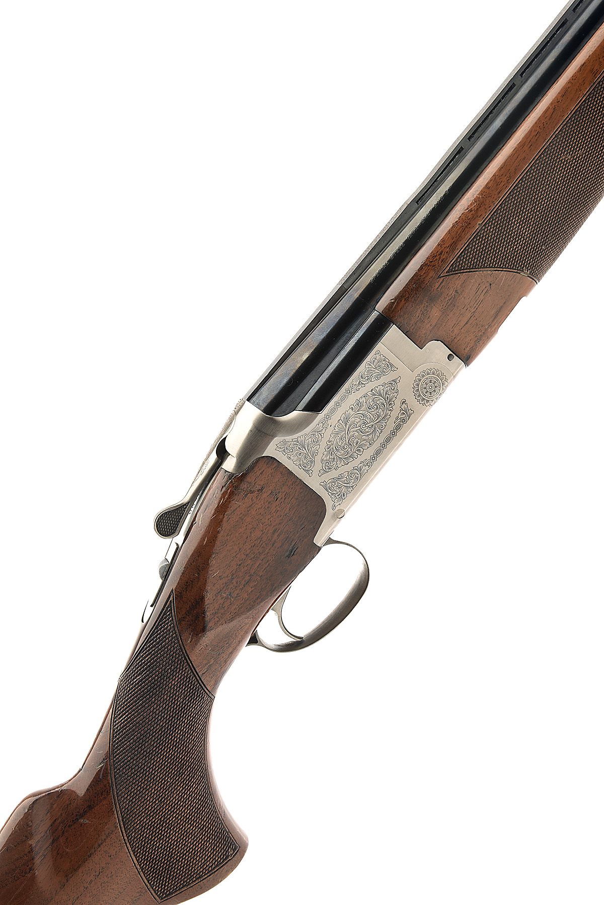 MIROKU 12-BORE (3IN.) 'MK-60 SPORT' SINGLE-TRIGGER OVER AND UNDER EJECTOR, serial no. 74946MP, dated 2008, 30in. nitro barrels with 7mm ventilated matt top-rib, 3in. chambers, bored approx. 1/4 and 3/4 choke, hold-open toplever, manual safety with integral barrel selector switch, acanthus scroll engraving, 14 3/4in. pistolgrip stock including buttplate, weight 7lb. 12oz.