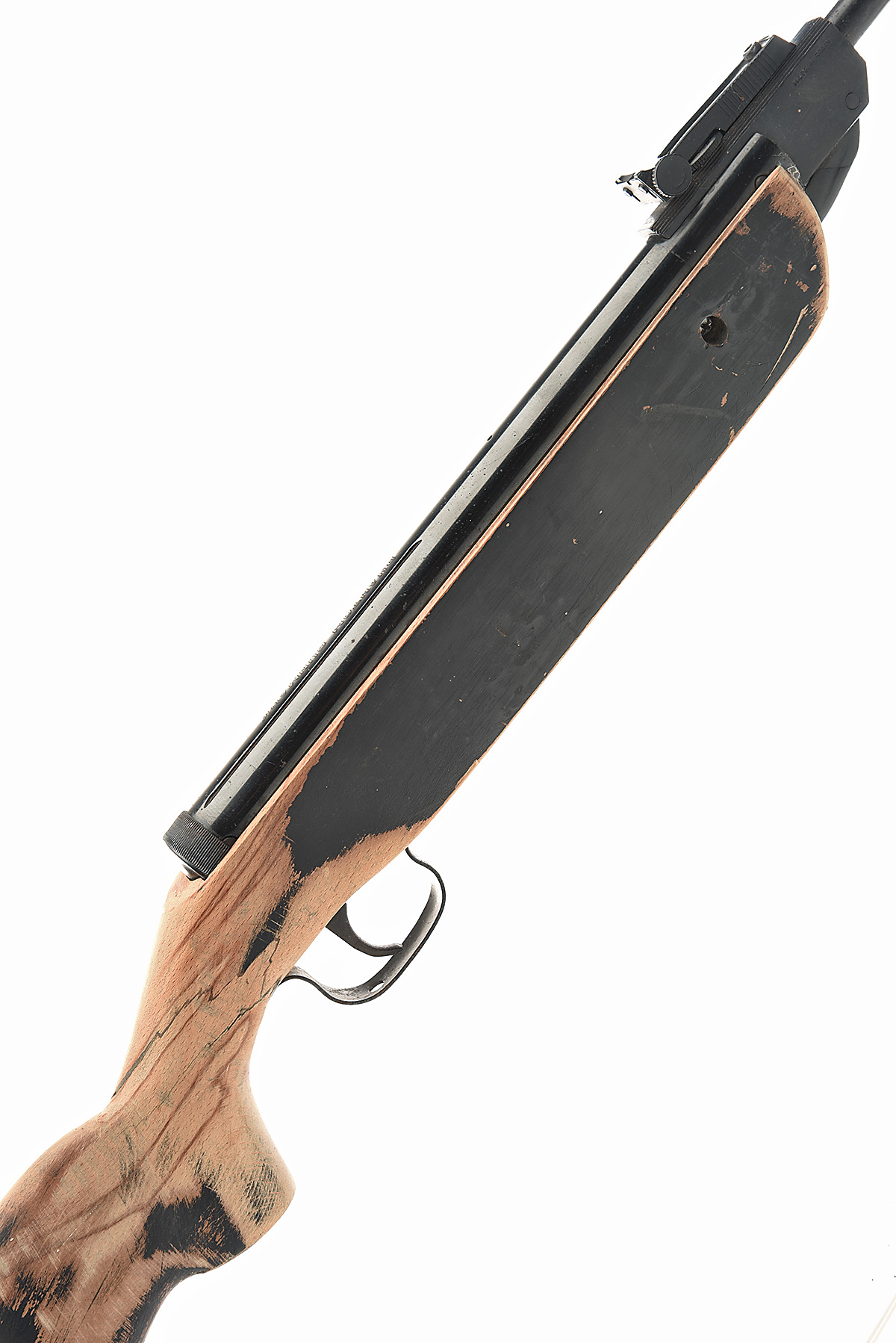 A SCARCE .22 GUNMARK PHANTOM AIR-RIFLE, serial no. C46239, manufactured by Norica for the UK market, with blued 17 3/4in. barrel, blued air-chamber and beech half-stock (repaired at wrist, originally painted black and now partially stripped of finish, the metalwork in good condition