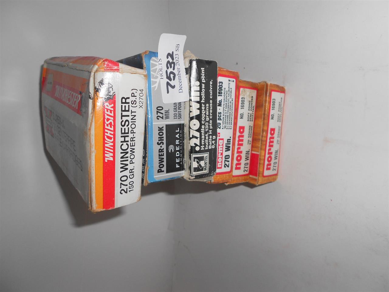 120 ROUNDS .270 WIN AMMUNITION VARIOUS BRANDS AND TYPES, 60 Norma 150 grn. SP semi pointed boat tail batcch 11026