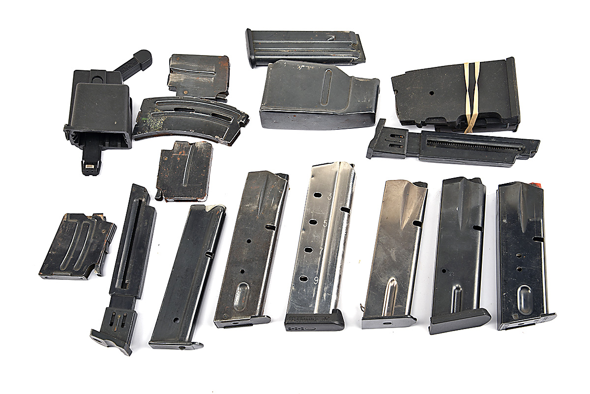 A COLLECTION OF 17 MIXED RIFLE, PISTOL & AIRSOFT MAGAZINES, 17