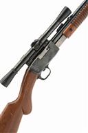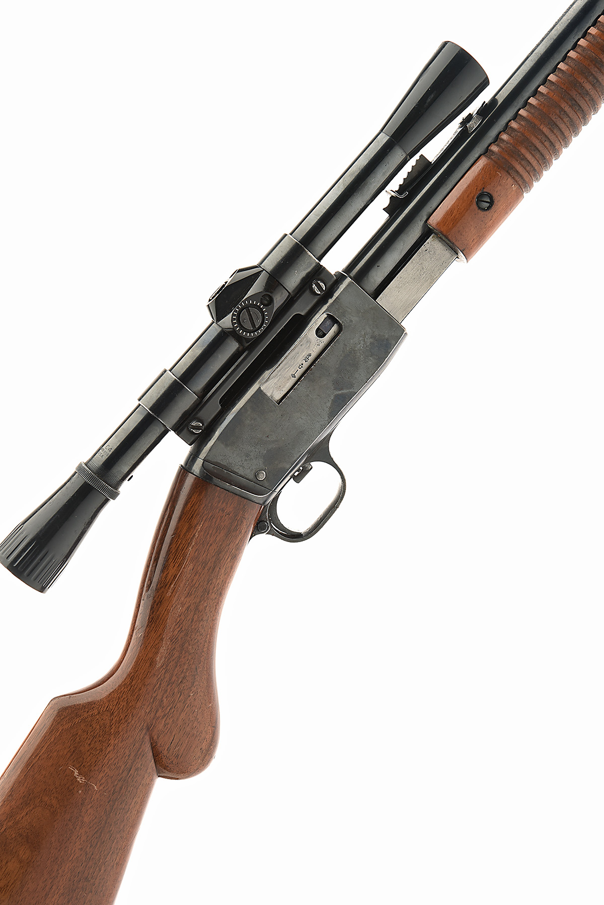 FABRIQUE NATIONAL .22 L PUMP-ACTION REPEATING TAKE-DOWN SPORTING RIFLE, serial no. 136512, circa 1963, 22in. nitro barrel, bead fore-sight, leaf rear-sight, fitted with a Weaver C4 telescopic sight, 3/4 length tubular magazine, manual safety, semi-pistolgrip stock