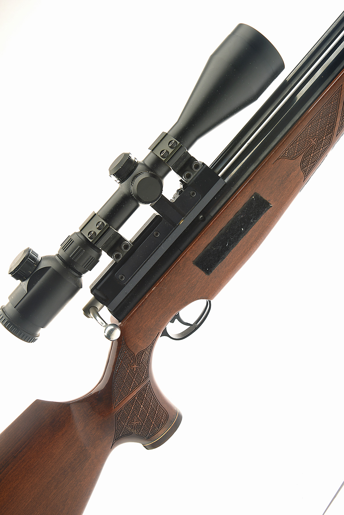 AN AIR ARMS S410 CLASSIC .22 PRE-CHARGED PNEUMATIC AIR RIFLE, serial no. 061674, with 26 1/2in. barrel including sound moderator, alloy bolt-action receiver, chequered beech half-stock, tested but missing magazine and fitted with a Richter Optik 3-9x50 telescopic sight